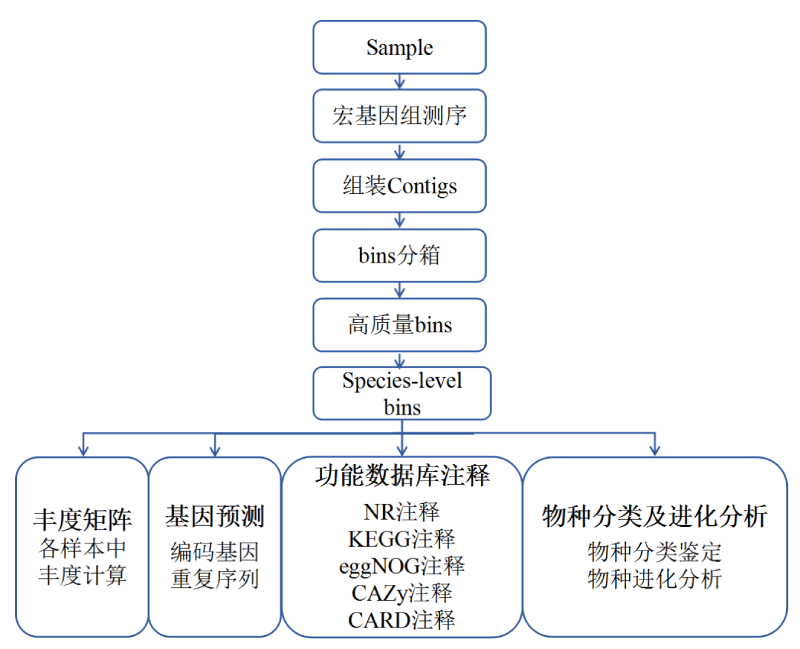 宏基因組測的是一個環(huán)境中的全部微生物的基因組信息,以獲得群落中全部的物種信息和功能信息,而Binning可以把宏基因組數(shù)據(jù)中來自同一菌株的序列聚到一起,得到一個菌株的基因組,對不同的菌株進行分類鑒定。Binning分析使我們得以洞察這些無法在實驗室培養(yǎng)獲得的菌株的生態(tài)適應(yīng)機制、營養(yǎng)互作機制和新陳代謝功能等,可以研究在環(huán)境中起重要作用的微生物、進化機制、及其與宿主的互作機制等。