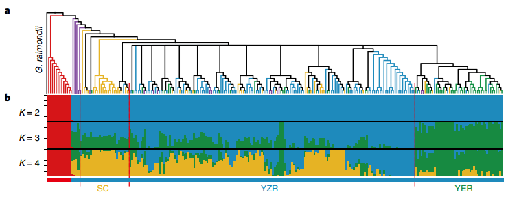圖3 二倍體棉群體進(jìn)化和群體結(jié)構(gòu)分析
