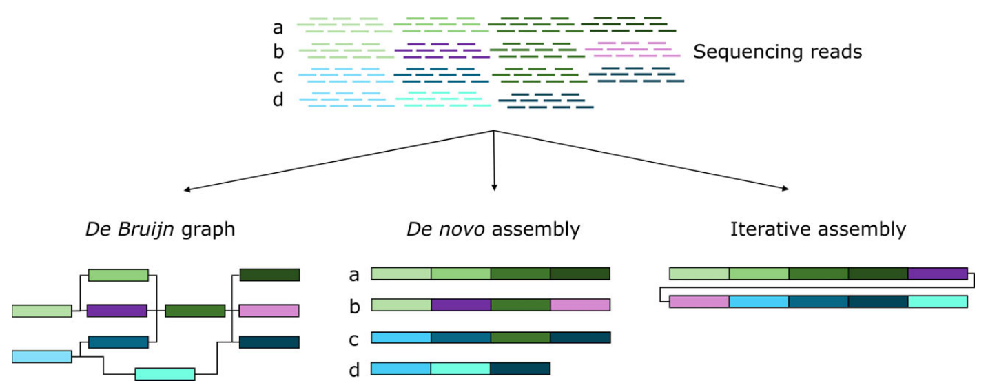 泛基因組主要有3種構(gòu)建方法:Map to pan,Iterative assembly和De novo assembly。從頭組裝(De novo assembly):是構(gòu)建泛基因組或者參考基因組最經(jīng)典的方法,分別對多個個體分別進(jìn)行從頭組裝并且注釋,然后將所得的每個個體的組裝好的序列與參考序列基因組進(jìn)行互相比對,找出比對不上的區(qū)域或者基因,這些個體獨(dú)特的基因就是非核心基因。