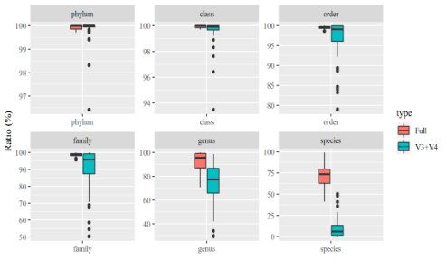 全長微生物多樣性最主要優(yōu)勢為種水平注釋率高,三代測序技術(shù)可以實(shí)現(xiàn)多多個高變區(qū)進(jìn)行測序,能夠更為準(zhǔn)確的還原群落結(jié)構(gòu)。